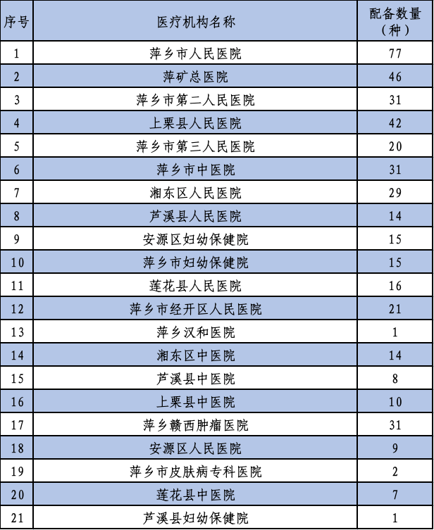 為方便群眾購藥,萍鄉市醫療保障局建立談判藥品監測調度機制,現公布10月份萍鄉市談判藥品配備情況。廣大參保群眾可參考配備信息,到相關醫療機構或零售藥店購買所需藥品。